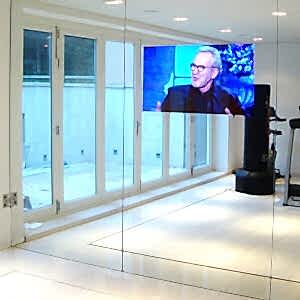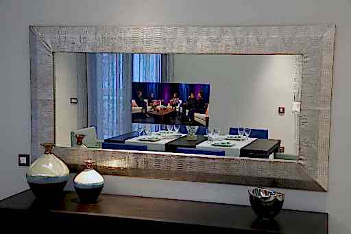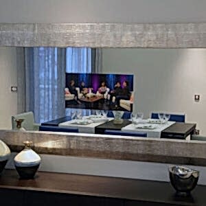 Tv önü aynası aslında sorgu odası aynası ile aynı olup,kullanım alanına göre farklı isimler almıştır. Aynanın arkasına monte edilen tv kapalıyken ayna görevi görür tvnin açılmasıyla tv görüntüsü gelir.